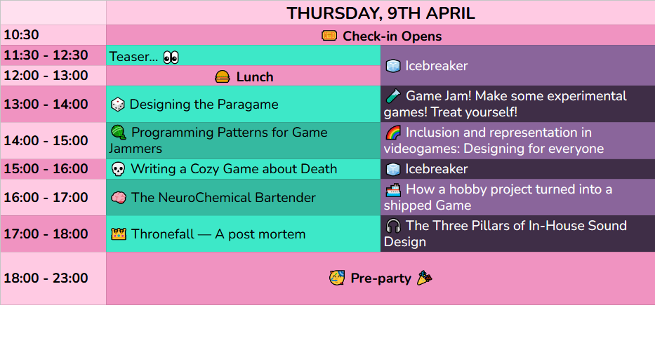 First Nomi will share her thoughts on how you should all treat yourself to making an experimental game during a game jam and how to approach that. Then she’ll follow up with an experimental crowd game so you get to know your fellow jammers and really understand the power of thinking outside the box.
