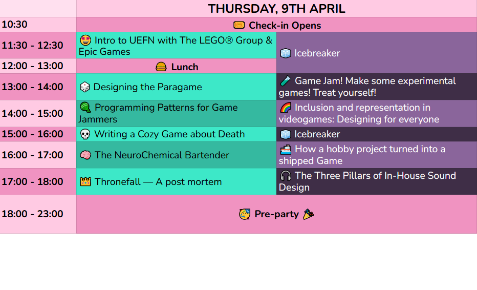 First Nomi will share her thoughts on how you should all treat yourself to making an experimental game during a game jam and how to approach that. Then she’ll follow up with an experimental crowd game so you get to know your fellow jammers and really understand the power of thinking outside the box.